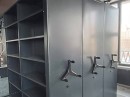 Произвели и установили мобильные стеллажи с индивидуальным цветовым решением на ковролин, с учетом всех технических требований к полу для безопасной эксплуатации. Металлические элементы конструкции были перекрашены из стандартного серого оттенка в черный, что придало интерьеру характерный промышленный вид.