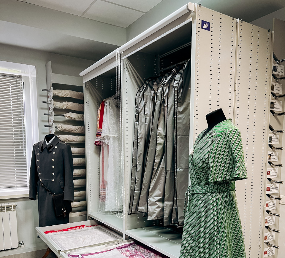 Изготовим передвижные стеллажи для хранения одежды на складе или в фондах музея с доставкой с завода производителя в города Хабаровского края и России.