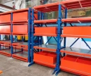 Цеховые стеллажи с выдвижными полками под фирменный стиль предприятия