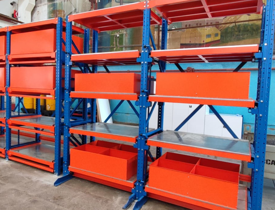 Стеллажи с выдвижными платформами для хранения литьевых форм